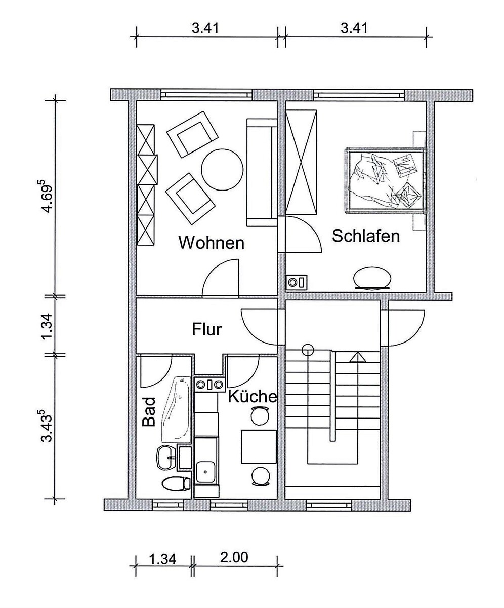 Bei diesem Objekt handelt es sich um ein saniertes Mehrfamilienhaus. Die Wohnung befindet sich im 2. Obergeschoss und verfügt über ein Wohnzimmer, ein Schlafzimmer, eine Küche sowie ein Badezimmer mit Badewanne.